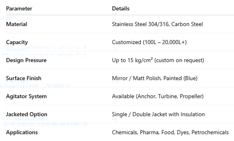 Customizable design as per client’s requirements (capacity, pressure, material grade).